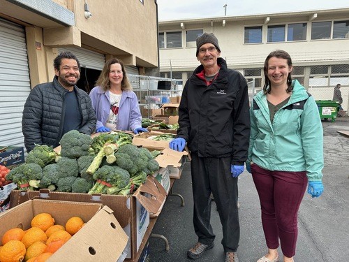 Surprise! Surprise! Surprise! The new chair of Compassion Ministry, Clarissa Johnston-Abril (far right) brought her visiting parents from Illinois, to the church’s Food Distribution which is one of her charges to check it out and help distribute food. Here she is with her husband, Aton Abril (far right), her mother, Rev. Lori Harvey and her father, David Johnston.