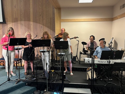 The Praise Band led by Rev. Dick Diamonte from Palo Alto First and Aldersgate, uplifted the congregants