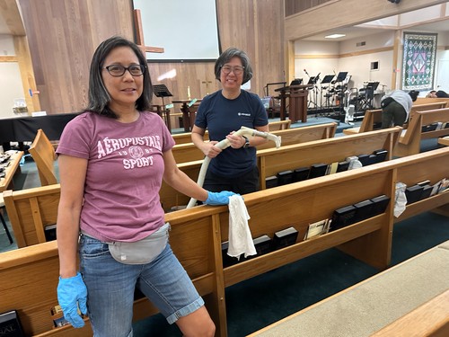 There was many hands helping to clean the sanctuary including Jean Yamaguchi's daughter, Jill, and Kristin To.