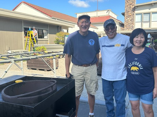 Many thanks go out to all the workers down in the trenches - church members, lots of scouts and their parents, and volunteers from CYS (Community Youth Service). The coordinators of all the areas were composed of Board of Trustees (BOT) members Cynthia Fukuda, Tomoko Tanaka, Rob Hikido, and Dave Brown. We acknowledge our faithful stalwarts who do the same job every year Warren Shimonishi, Wayne Kuwada, Keith Nakashima, Mimune and Mieko Tsukamoto, and of course, our grill master Mark Iwagaki. A special thanks goes out to Ted Wong who was our Master Wok-Cleaner and to him and his wife Sue who brought eight dozen delicious brownies for dessert. DeeDee, the clean-up day director in her humble way, noted “All I did is put out all the supplies and tools, and they (BOT Leads) do all the work, but I couldn’t have even done my part these last two years without the hardest working wing man, BOT member Brian Hamilton.”