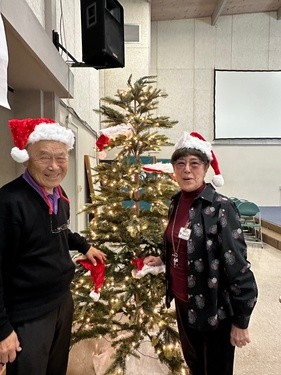 Spearheading the Project of making it a Merry Grant School Christmas is Santa Roy Takeuchi and assisted by Elf Betty Hayashi.