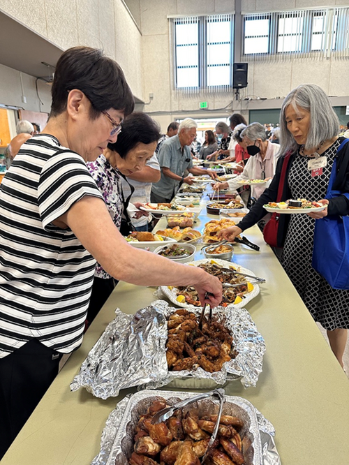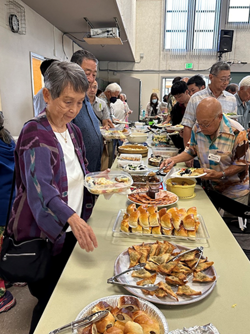 What a fine spread of delectable cuisine furnished by our Wesley family. Here we see Nora Yamashiro and Masaru Kameya lead the way.