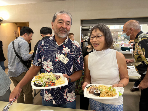 Piled high and wonderful. Paul Ueunten and Marcia Yasukawa just can’t wait to dig in.