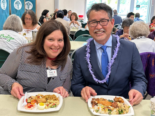 Tina Urata and Smiley Kai, two of our leaders in the Wesley Ukulele Band, enjoyed their meal.