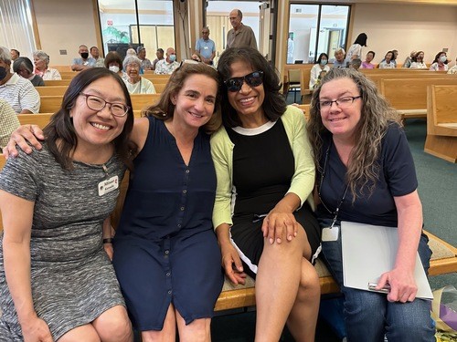 This past July, our Compassion Ministry chairs, Misao Kusuda (far left) and Mary Leano (far right) recognized Principal Paulette Zades (second from left), for all her work and support which was key to building our relationship with Grant Elementary School. It led to our school supply drive, our tutorial program, joint dinners, cultural exchanges and our food distribution program to Grant families. She is retiring but noted, "I’m retiring, but I’m not leaving” and hopes to maintain her connection with us. Integral to our relationship and our Food Distribution program is the work of Lillian Flores, second from right) who is in charge of the school’s food program and is the Family Liaison. She keeps us connected with our Grant families.