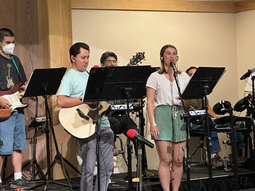 Evan Hamada on guitar from UJCC helped lead the Praise Band and presented the Asian Camp Theme “In Christ.”