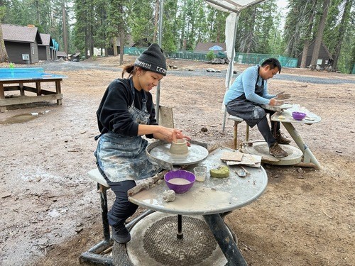 Whoa! Rain? Really? Yes...rain greeted all of our Wesley families the Friday of Labor Day weekend at our annual Church Camp at Pinecrest Lake. And it continued pretty much all weekend clearing up on to bright sunny climes when we left on Monday. While this is the lead-in to our camp weekend, it was not the highlight, just a minor distraction. Yes, it was wet. Yes it was cold, but the 109 who attended bonded together perhaps because of the weather. We huddled in the mess hall and played games, did bead work and ventured outside between drops to do some tie-dying. And the kids? They didn’t care…just so long as they were together.