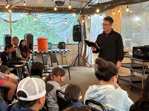 We have to thank John Ng and Christine Ozawa, our very passionate family camp directors, for the planning, preparation and work all year in putting this weekend together for us. I’m sure the rain just added pressure to our camp situation, but they were there wheeling and dealing away all issues and problems. This year was made a little better by the new luxury cabins (10 of them with heat and full bathrooms, microwave) and the old stand-by Bosch Hall (hotel with heat, but bathrooms outside) as many of the families were initially in leaky, cold, dusty tent cabins (no amenities) and found refuge by taking vacant spaces in both locations. We are so grateful to the Ngs and their leadership because they were perfect and why…because they love this camp and the memorable experiences garnered, and they work hard going over every nuance and detail in making our camp experience the highlight of our church year. Hats off and accolades.