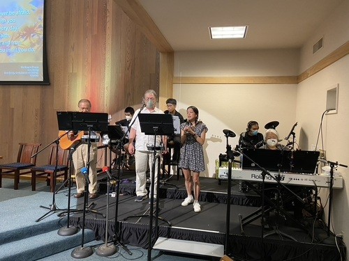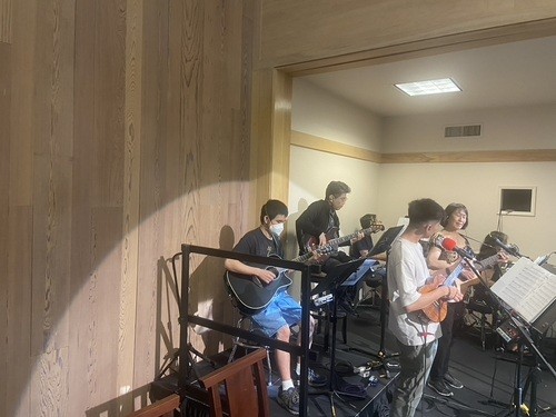 We are grateful to the members of our Praise Band who lead us in worship each Sunday. Our regulars include Marilyn (keys) and Ted Hasegawa (guitar and vocals), Todd Soo-Hoo (drums), and Ichiro Bakoshi (bass). Joining them are Ryan Miyahara (guitar, drums), Jake Shimada (ukulele and vocals), Joanne Miyahara (keys and vocals), Dave Land (vocals), Tina Urata (ukulele, guitar, and vocals), and Ashley Cook (vocals). Working behind the scenes to coordinate the band are Marilyn Hasegawa and Music Director Mark Teagle. And big thanks to our Tech team that work with our upgraded sound system to make the band sound great in the room and in the recording.