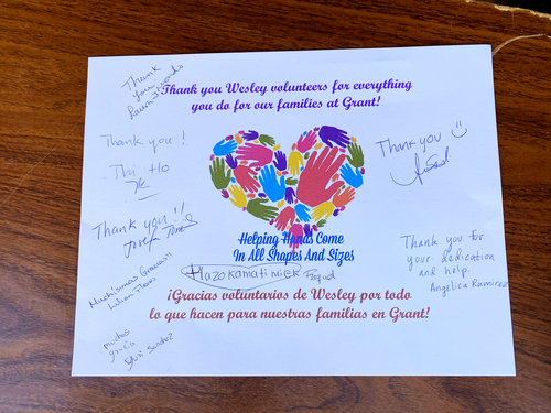 On Tuesday Nov. 14, Compassion Food Distribution volunteers were surprised by a huge homemade lunch! Grant School Moms, under the direction of Grant Elementary School Family Liaison Lilian Flores, prepared a tremendous meal to show their appreciation. There were handmade tamales with all the fixings including authentic Mexican food items that volunteers had never seen before, but enjoyed immensely. Gracias!