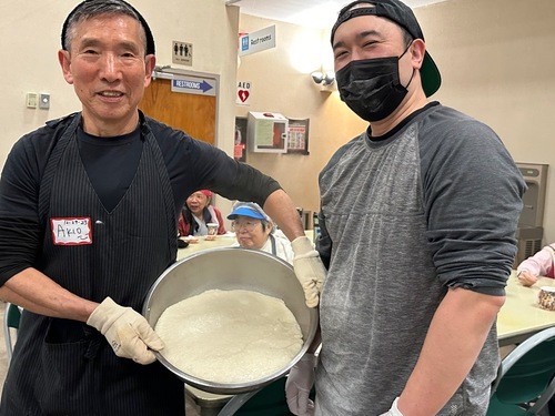 Making mochi requires a village and this year was no different. Our church was alive with activity and very noisy with loud laughter, constant chatter, and “Hiroshima” background music on Dec. 29. You had to be there to witness or better yet participate in this organized fundraiser of hands-on labor of love.