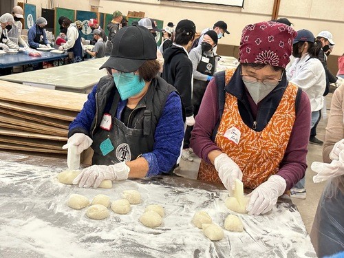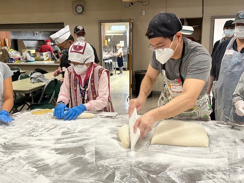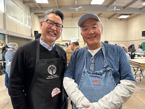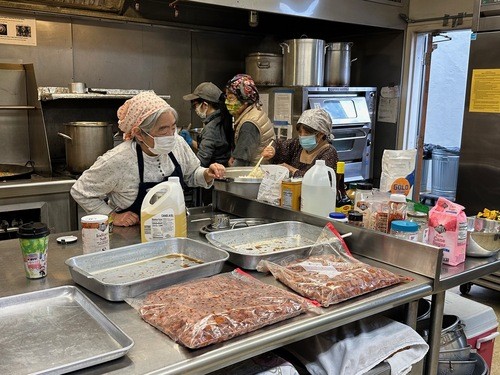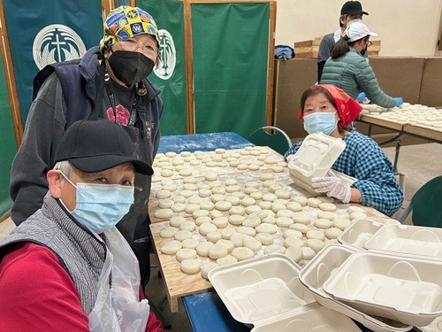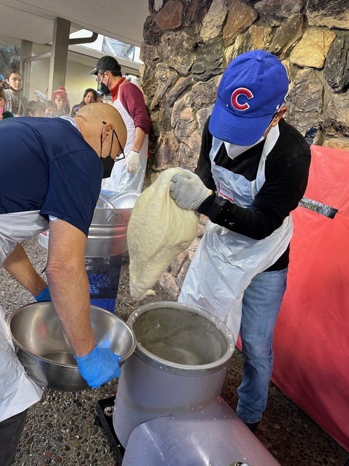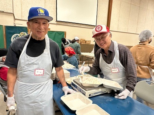 Jane Kawasaki and Yu-Ai Ki volunteers were hard at work preparing lunch for all 200 workers.