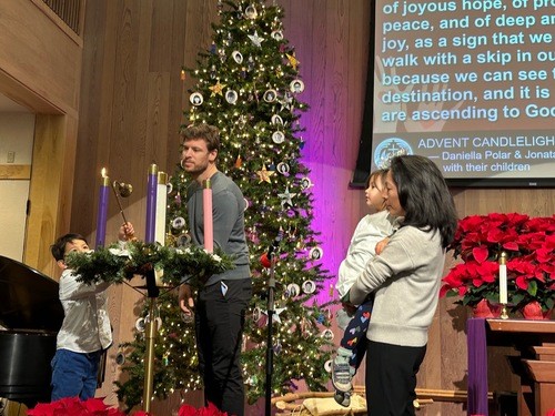 Daniella Polar and Jonatan Schumacher and their children lit the third Advent candle of JOY on Dec. 17. “We light these candles, the candle of joyous hope, of proclaimed peace, and of deep and everlasting joy, as a sign that we are those who walk with a skip in our step because we can see the destination and it is pure joy. We are ascending to God’s promise."