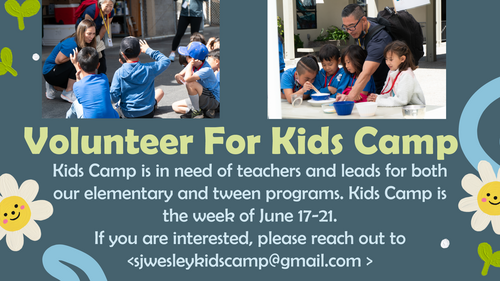 If you are interested, please reach out to sjwesleykidscamp@gmail.com.
