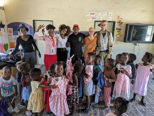 Our own Wesley UMC Administrative Assistant, Terri Thornton and her husband Jeffery Roloff are amazing good-will ambassadors to Africa. They just returned from their annual trip. They had packed up many suitcases of school supplies, books, clothing and specially requested items for camps and schools in Botswana and Zimbabwe. Terri carefully selected kits for women escaping abuse in a women's shelter in Botswana such as pajamas, underwear, soap, lip balm, etc. Jeffery knew that a school in Zimbabwe had started a chess club for the students, so they brought chess sets besides books, pencils, pens, etc. Terri and Jeffery loved seeing the overjoyed smiles of the recipients. Thank you for your uplifting example of sharing, Terri and Jeffery!