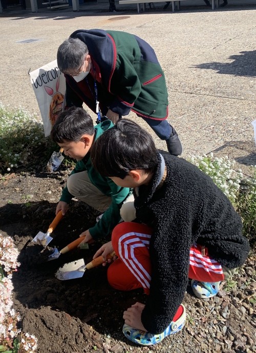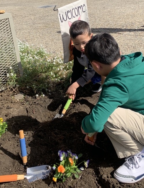 On Palm Sunday, God’s Garden children planted some flowers on the patio, with some surprise help from Dee Dee Azuma. Check out the colorful flowers next to the office next time you’re at church! Thank you to our older Giving Tree children for helping the younger ones dig and plant the flowers.