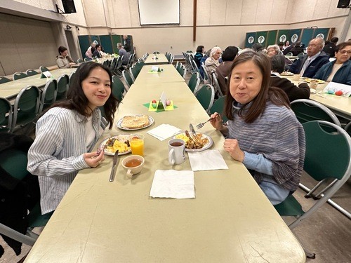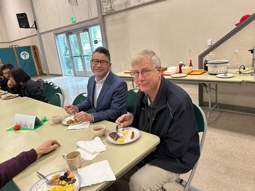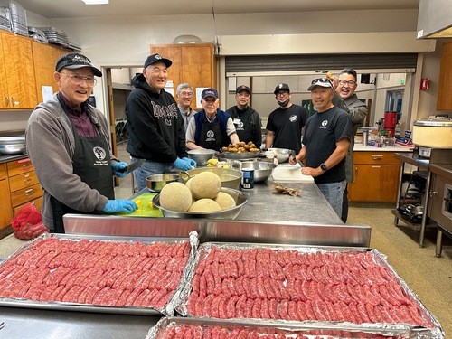 Our pancake crew, first shift, from left: Ron Ogi, Hector Acuna and Todd Soo-Hoo. Do you want to know why the pancakes are so good? “We use real olive oil for the griddle,” Ogi commented.