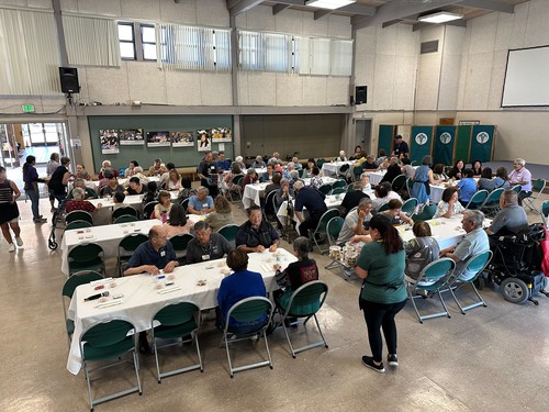 Approximately 85 Primetimers attended the special lunch provided by Wesley's Umbrella Ministry on July 31st, and was it ever a fun-filled story-telling time for all who gathered, many of whom haven't seen one another since before the pandemic. So this was quite special.