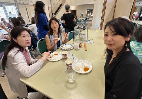 Hatsumi Sato and Michiko Collins (see her personalized bag) and Kaori Okano ate every last bit of lunch. Tasty!