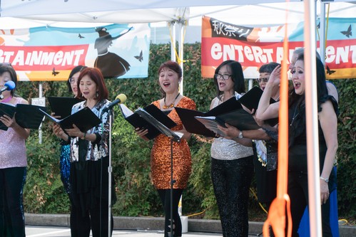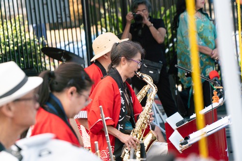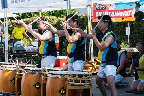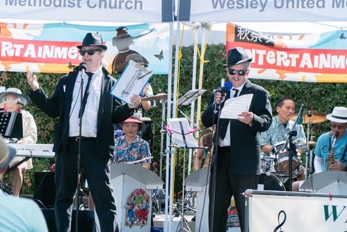 Many thanks to all those who made the wonderful entertainment at Aki Matsuri possible. First our set up crew who spent Friday morning setting up the canopies and chairs to be ready for Saturday. Then Saturday we had a group that set up the sound system with Dave Brown serving as lead technician. Then came the solid four hours of excellent entertainment from our community. First to take the stage was the Chidori Band who played a great selection of Japanese standards and featured a wonderful set of guest singers. Then the Wesley Ukulele Band performed. They started with their future stars playing the song "Lava" to the delight of the crowd. Then came a set of Hawaiian favorites many featuring hula dancers as well. Wesley's own Jazz Ensemble took the stage with their full sound and featured soloists like Shizuko Adachi, Wendy Horikoshi, plus Dave Land and Mark Teagle reprising their roles as the Blues Brothers. We welcomed COSMO Silicon Valley Community Chorus who performed their tight harmonies with lots of energy and enthusiasm. And our final act was San Jose Taiko who once again wowed the audience with their amazing percussion ensemble. Thanks to Aki Entertainment Chair Mark Teagle for putting the whole show together.
