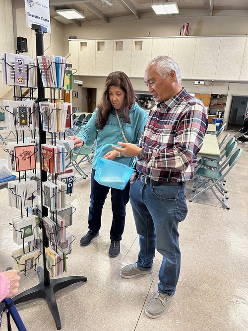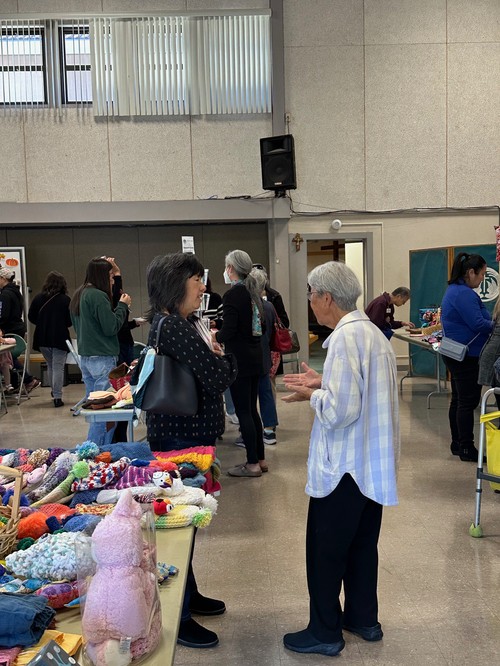 Mostly Wesley folks checked out the craft items for sale with Flo Oishi and Janice Noda shopping.