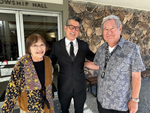 Nice to see Doris Tabuchi after her valve replacement surgery. She came to Wesley to attend a relatives memorial service, seen her with Rev. John and hubby Steve.