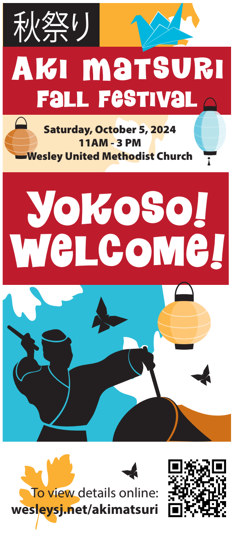 Wesley United Methodist’s Aki Matsuri Fall Festival was held October 5, 2024 for the first time in five years. From its inception as far back as the 1930s, Wesley’s Aki Matsuri has always been a festival of fellowship and community engagement. This year’s festival was no different as a team of generous and dedicated organizers from all parts of our congregation came together to host a celebration of Wesley’s welcoming spirit and reconnect with our community.