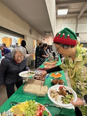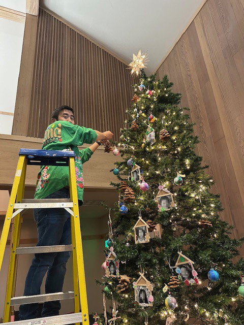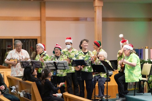 Special thanks to Mika Visitacion and Mari Fujii for helping to plan and organize the event, to the talented Wesley Ukulele Band, and to Mark Teagle for emceeing the evening among other important, jolly tasks! Many thanks to Eric Fujii who put up the Christmas tree in the sanctuary with the help of Connor and Byron Longmire. Thanks to the many folks, including the Ng family, who helped set-up early Saturday morning, Shelley Nakashima who ordered and picked up additional food in anticipation of the large turnout, CAF/MYF youth, parent volunteers, and God’s Garden staff who helped with the ornament making stations, the potluck, in the kitchen and with clean up! A huge thanks to the Scouts for setting up all the tables and chairs the evening prior!