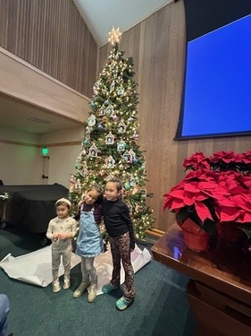The event came to a musical close with a sing-along in the sanctuary led by the ukulele band, and a visit by Santa ringing his bell with a gold sack full of candy canes for one and all! By the end of the evening, the bare 12-foot Christmas tree in the sanctuary was aglow, fully decorated with colorful, sparkling ornaments. What a festive way to welcome the Advent season!