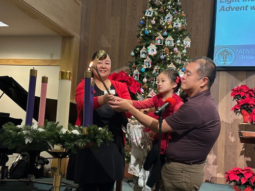 The Mikami family lit the third Advent candle (the pink one) representing Joy on Dec. 15. “We light this candle of joy to be present with ourselves, our friends, our families and our neighbors that in sharing our vulnerable lives we might share in the glorious joy of God’s salvation together.”