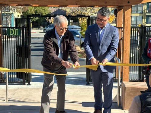 Rob Hikido and Rev. John Oda, cut the ribbon, opening the area for our church and community use.