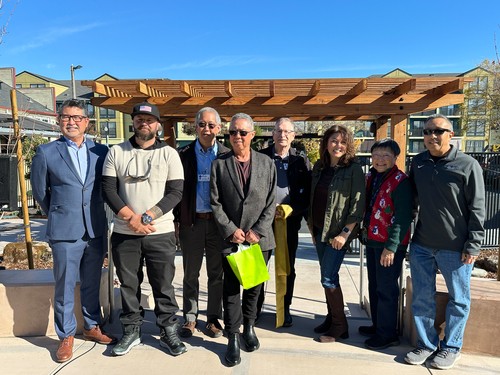 Key people involved in the process were pleased to see the finished garden project: from left: Rev. John Oda, Leo Munoz, Rob Hikido, Bob Tanaka, Roger Miller, Kelli Martines, DeeDee Azuma, and Keith Nakashima.