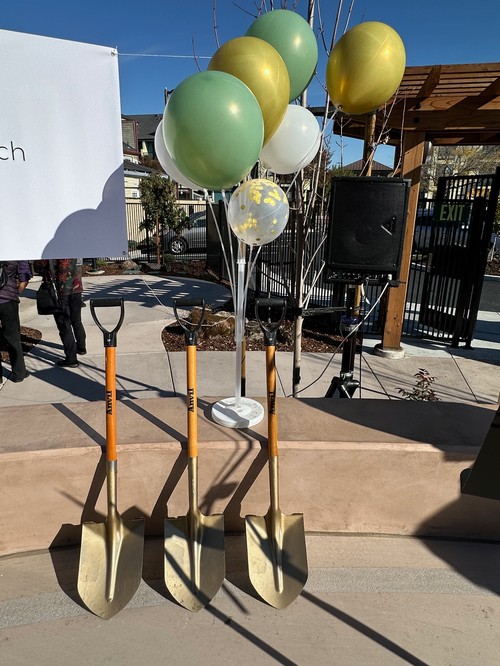 Shovels used for the ground-breaking ceremony several months ago.