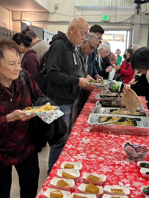 What a spread coming from Panda Express. The hosts ensure all the food was put out: Jane Hayashi, Jim Mar, Kelli Martines, Bev Acuna, Terri Koike, Judy Yasutake and Grace Wada.