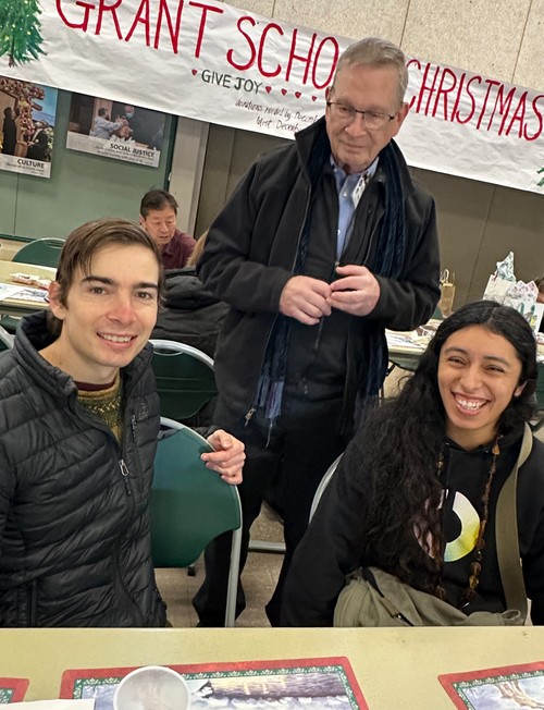 After sharing a bountiful repast, Roger Miller welcomes Ryan McBride and Elizabeth Morales, new folks to our church.