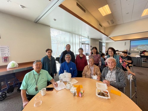 (Seated Front row). Warren Hayashi, Leighton Horio, Miriam & Tom Taba. Great lunches are provided each Tuesday and Thursday til the end of the semester.