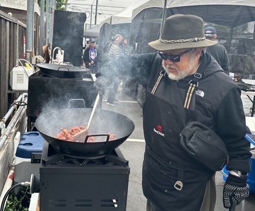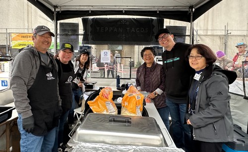Teppan Taco food booth workers prepping for the onslaught on Nikkei Matsuri Festival goers. This delicious treat was sold out by 2 p.m.