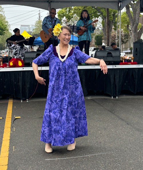 Church member and Wesley Ukulele Band leader, a smiling Tina Urata, demonstrated her Hula skills.