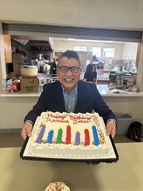 "Happy Birthday!" Rev. John. SPRC celebrated Rev. John's birthday with a special smaller gluten free cake while the rest of the congregation were delighted with the delicious glutenous one.