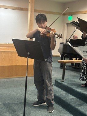 During Sunday service, we were fortunate to have the very talented violinist Jeffrey Bao accompany the choir on their anthem, "The Life of Praise"
