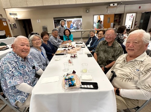 Sated and enjoying their table mates were clockwise from left: It’s and Liz Yokota, Jane and Warren Hayashi, Irene Nakamitsu, Janet Kaku, Rose Kitagawa, Ron Tanizawa, and Gene Kinoshita.
