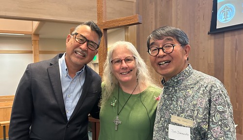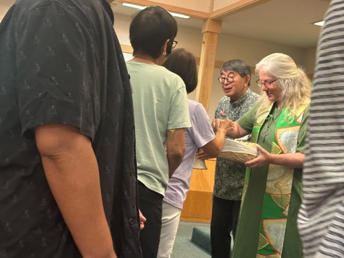 Rev. John Oda greeted guests from Japan. Revs. Claudia Genung and Toshi Yamamoto. The Rev. Claudia is a Global Missionary with the General Board of Global Ministries of The United Methodist Church, and is currently serving as senior pastor with the Yokohama Union Church (YUC) – Japan. She's been a missionary for 33 years serving in a variety of capacities. Wesley UMC has been a supporter for her missionary work over the years. She presented a message of Discipleship and Jesus' invitation to hear and share the Gospel by spreading the Good News. She also showed a number of slides talking of her journey and a life spent in Japan as a Christian missionary.