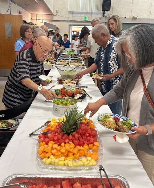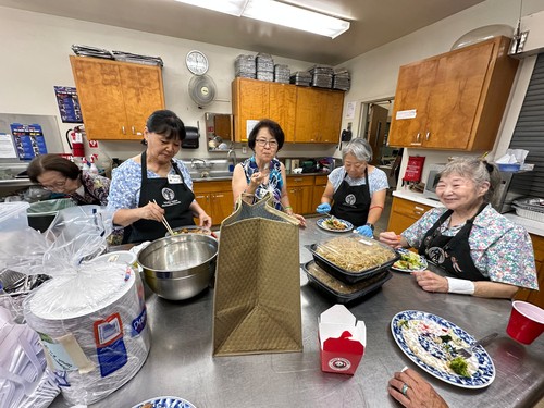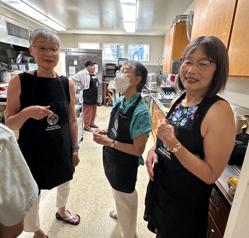 We thank the Memorial Committee for hosting, serving this meal many of whom you see standing and eating their lunch. They stayed to clean up. A few were from left: Amy Shiozaki, Mary Horio, Judy Kanemoto, Bev Acuna, and Joanne Kumano.