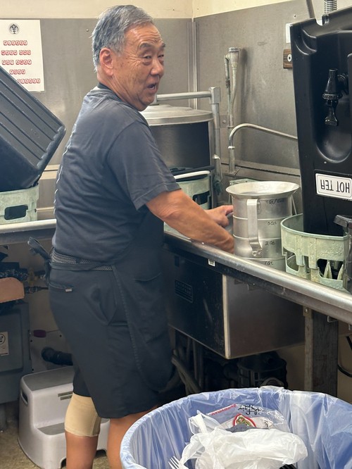 And always, there’s Wayne Kuwada, our resident dish washer, cleaning dishes. I believe he's the only one who knows how to run that dishwasher unit.