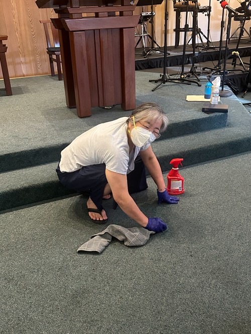 Thank you to everyone, the church village, team leaders for each area, the Board of Trustees, the community, and especially a huge shout-out to perennial over site person, DeeDee Azuma. She does all the prep work a day before, provides appropriate cleaning solutions for each area, supplies the crew with mops, buckets, rags, and much needed signage in every area, on every element to be cleaned. At the end of our stint and all signs removed, the church is clean!!! She makes the village’s work easy. Oh, and finally after decades, DeeDee allowed the precious Yamaha Grand Piano to be cleaned (outside only). Thank you, DeeDee.