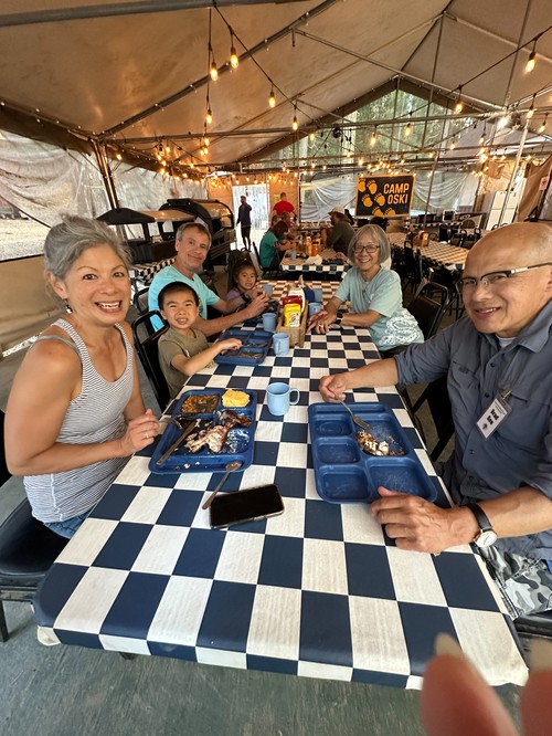 Accolades and homage to Warren Shimonishi, who came to camp (thanks to his daughter, Lori who brought him), where he caught fish, ate snow cones and hung out chatting with campers. Of course, you all know that he and Rosie are the reason we have our annual Church Family Camp. They originated this event back in 1975 and led it for over 40 years until just a few years ago when the Ngs took it on. Are we ever thankful.