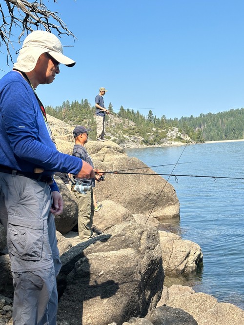 John and Christine Ng planned for months and put together another opportunity for a memorable experience for our church family. At the top there was a fishing derby and those who hiked out to Wesley Rock were not disappointed. New and old shared in the thrill and mind you…it is a thrill…of catching the first fish of the day. Oliver Schumacher caught the biggest trout…huge…16.9 oz. What a prize-winning fish! John, Ham Tran, and Bob Yasukawa were our fishing masters for the weekend and brought in new kids to this experience. And once a fish is reeled in, of course, they are hooked.