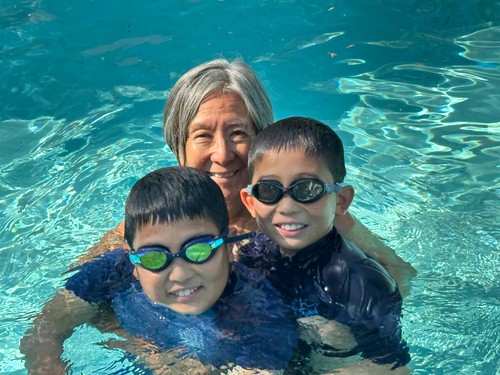Grace Wada and her two adorable grandchildren, Trevor and Stuart.