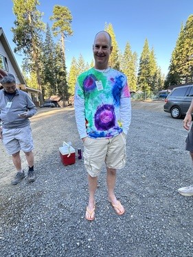 Brian Hamilton and the tie-dyed t-shirt he created. Nice job.