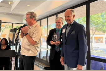 PACT Executive Director Fr. Jon Pedigo and Mark Teagle present the Community Builder Award to John A. Sobrato.